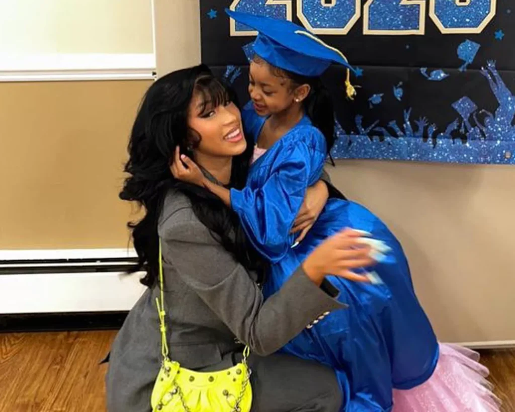 When Kulture finished preschool, Cardi called herself an “emotional proud mommy,” hugging her grad while she rocked her tiny tassel and gown.