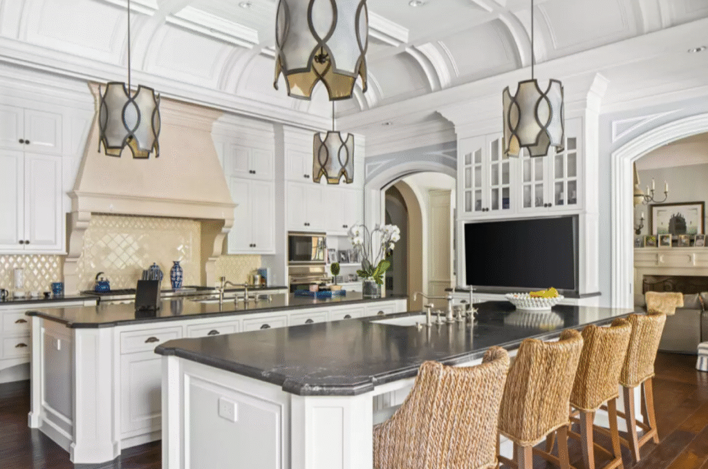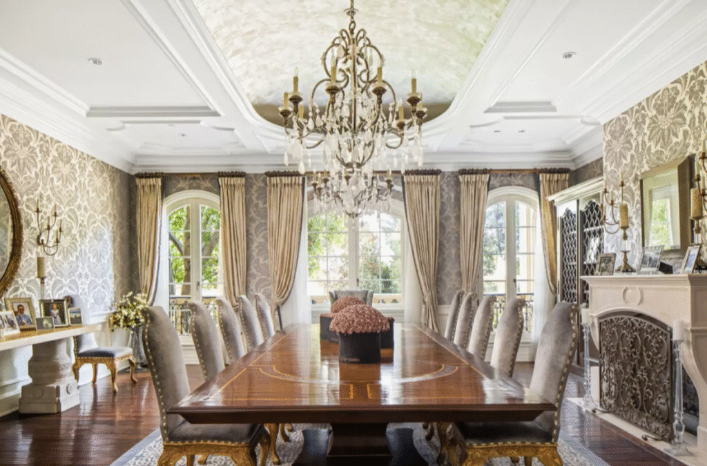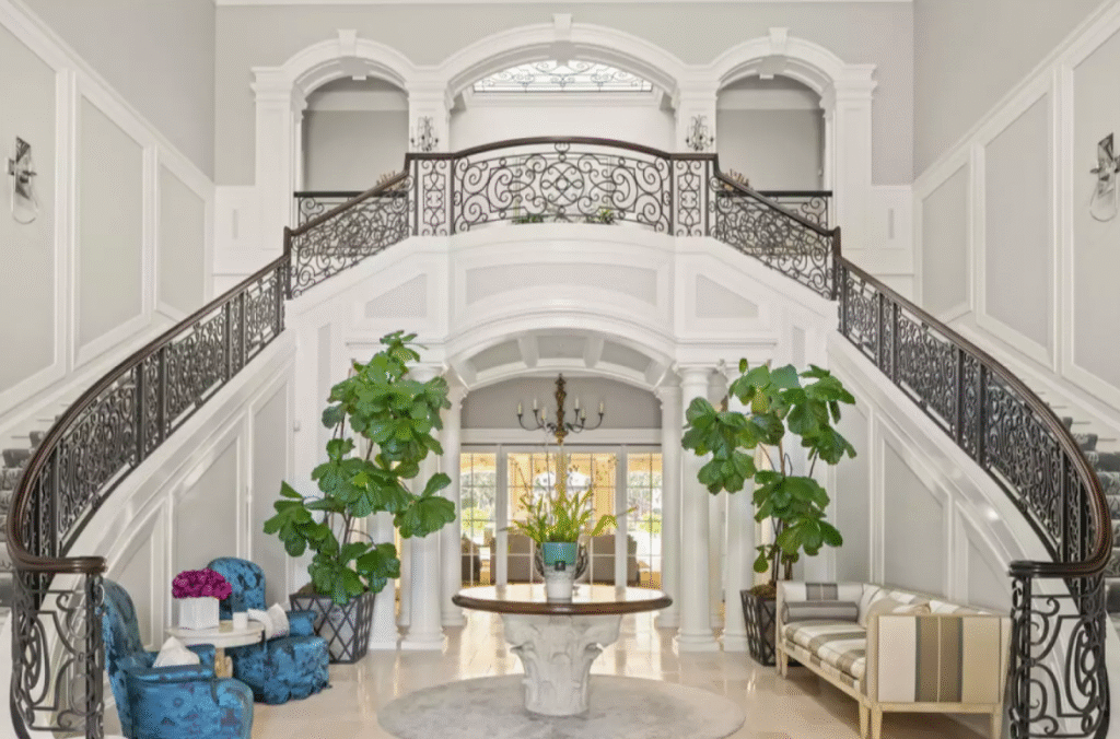 The interior of Mark Wahlberg’s Beverly Hills home is nothing short of stunning. The grand entranceway welcomes visitors with a double staircase, intricate iron railings, and natural light streaming in through large windows. The mansion’s entrance strikes a perfect balance between elegance and comfort.