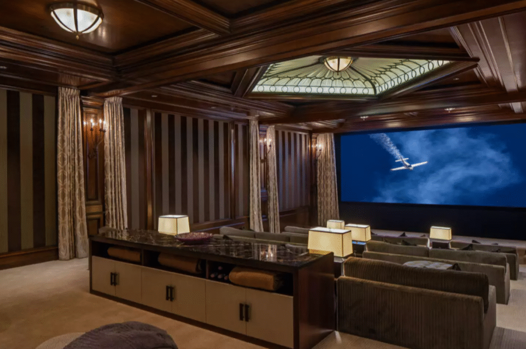 The private movie theater is one of the most impressive features of Wahlberg’s mansion. With its rich wood paneling, plush seating, and large screen, this private theater provides the ultimate cinematic experience. Its design blends modern technology with an elegant, classic look, making it the perfect place for family movie nights or private screenings.